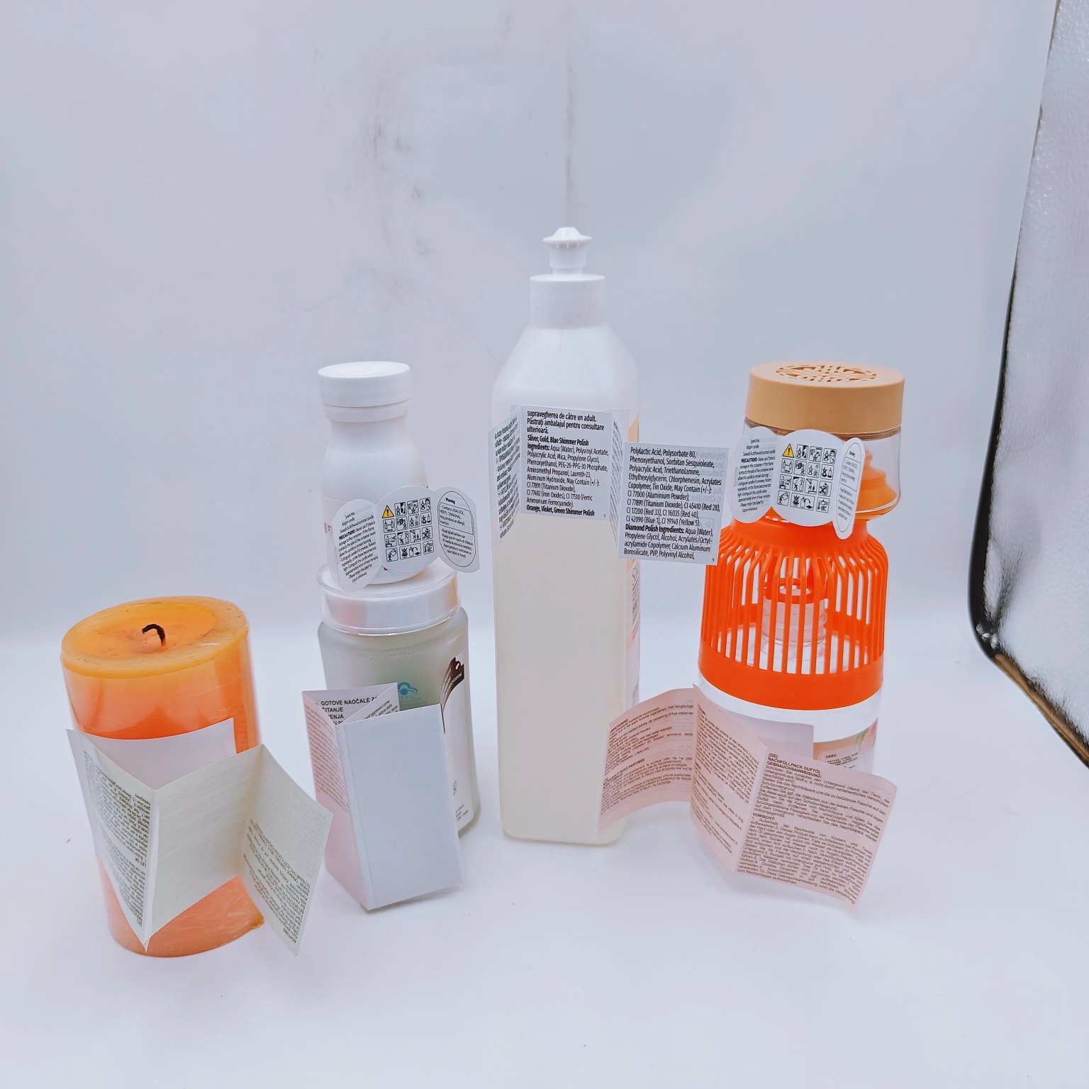 V kozmetickom sektore tieto štítky obsahujú podrobné zoznamy zložiek a obsahujú deklarácie alergénov, podrobné pokyny k aplikácii.