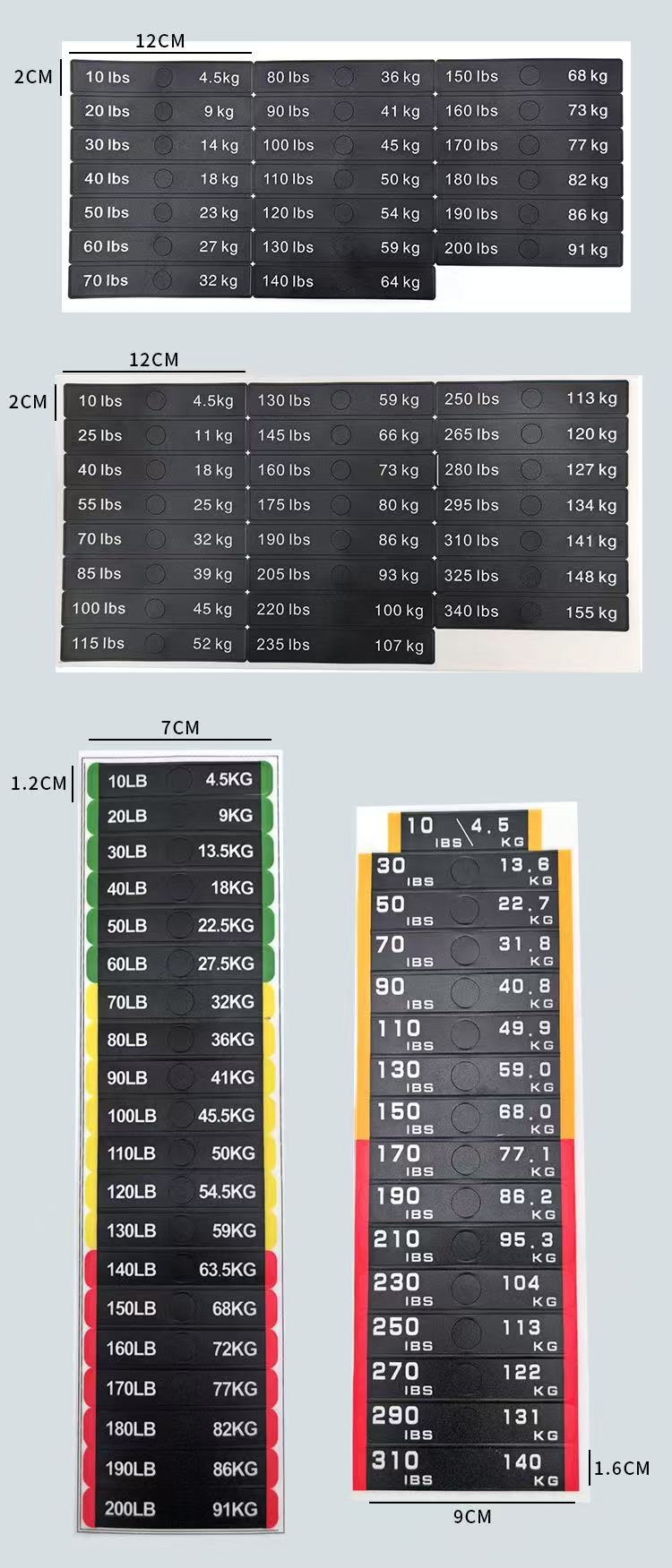 A2: Tieto nálepky so záťažou sú použiteľné na rôzne fitness zariadenia, ako sú činky, činky, taniere so záťažou a zásobníky na posilňovacie stroje.