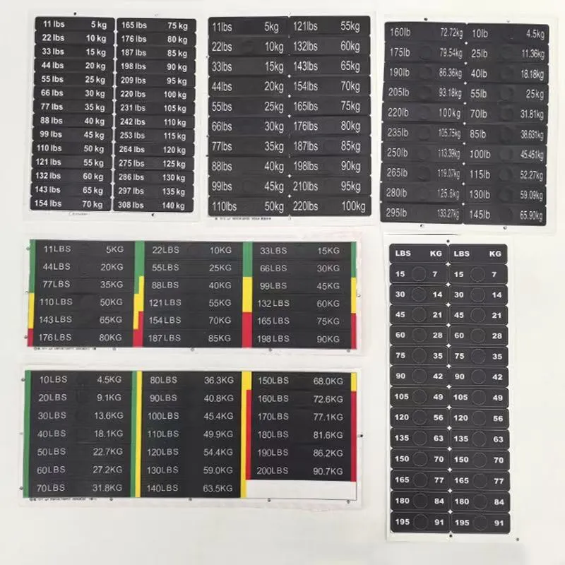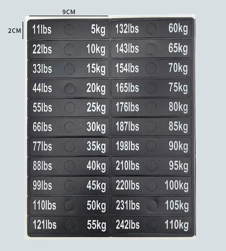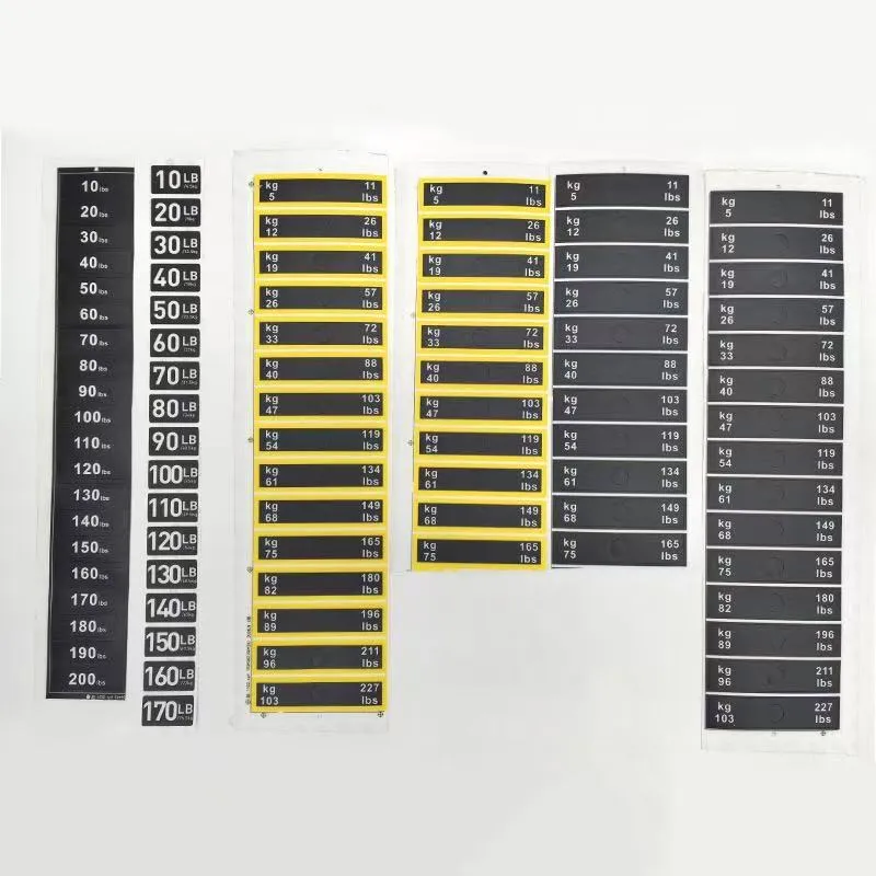 Tieto nálepky sú vyrobené z materiálov prémiovej kvality a sú odolné voči opotrebovaniu pri každodennom používaní. Vytlačený text zostáva ostrý a bez vyblednutia počas celej životnosti fitness zariadenia, čo zaručuje dlhotrvajúci výkon. Vďaka jasným označeniam hmotnosti môžu používatelia lepšie sledovať svoj kondičný pokrok a stanovovať si tréningové ciele, čím dosahujú vedecké riadenie tréningu.